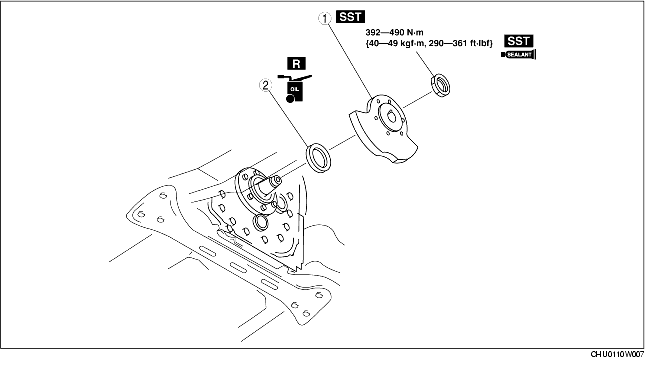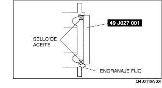 2. Tapar el sello de aceite trasero en el engranaje fijo con la SST.