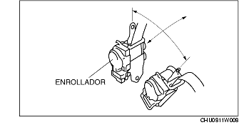 4. Cuando se tire del cinturón de seguridad, asegurarse de que no se bloquee cuando se inclina el enrollador unos 15° con respeto a su posición de instalación y que se bloquee cuando se inclina de 40° o más.