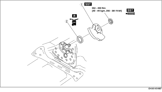 2. Tik de achterste oliekeerring gelijkmatig in het vast tandwiel met SST.